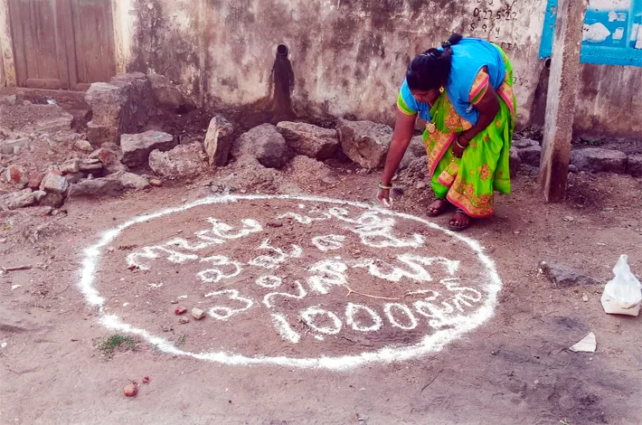 వరంగల్ (మహబూబాబాద్) ఫిబ్రవరి 19 (విజయక్రాంతి): గ్రేటర్ వరంగల్ నగరంలోని వివిధ ప్రాంతాల్లో ప్రజలు రోడ్లపై చెత్త వేసే ప్రదేశాలను ప్రత్యేకంగా గుర్తించిన మున్సిపల్ అధికారులు అందుకు విరుగుడుగా అవగాహన కార్యక్రమాన్ని చేపట్టారు. ఇందులో భాగంగా వివిధ డివిజన్లో చెత్త ఎక్కువగా వేసే ప్రదేశాలను శుభ్రం చేసి ‘ఇక్కడ చెత్త వే స్తే వెయ్యి రూపాయలు జరిమానా’ వేస్తామంటూ సిబ్బంది చేత ప్రత్యేకంగా ముగ్గు రూపంలో రాయిస్తున్నారు. ఈ ముగ్గులను చూసి చెత్త వేసేవారు ఒక అడుగు వెనక్కి వే సే పరిస్థితి కనిపిస్తోందని మున్సిపల్ అధికారులు చెబుతున్నారు.