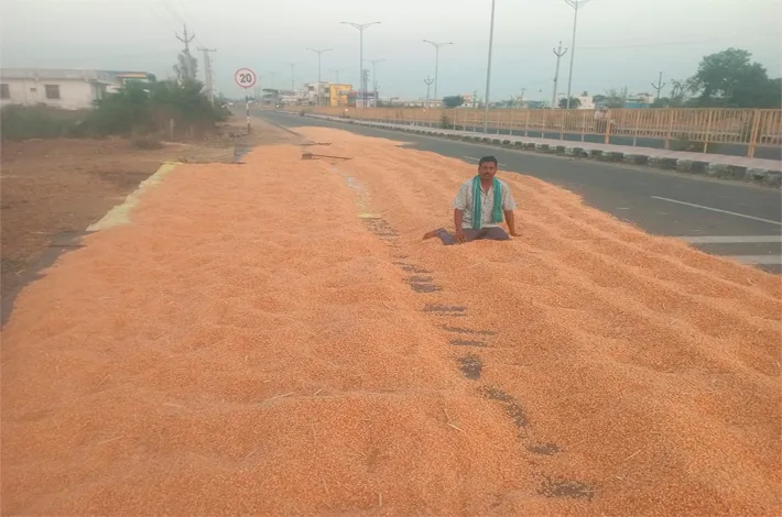 పంట చేతికి రావడంతో కోత కోసి మురిపిడి చేసి పంటను అమ్ముకునేందుకు రోడ్లపై ఆరబెట్టిన రైతులు కొనుగోలు కేంద్రం లేక పంట ఎలా విక్రయించాలో అర్థంకాక ఇబ్బందికి పడుతున్నారు. ప్రభుత్వం ఇప్పటివరకు కొనుగోలు ప్రారంభించడం లేద ని రైతులు వాపోతున్నారు.