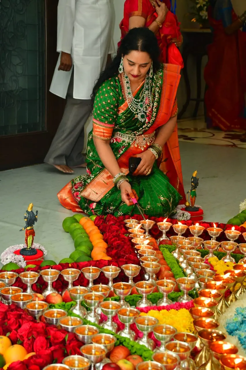 (‘శ్రీ లలితా సహస్ర నామ స్త్రోతం’ నుండి..) ‘అఖిలాండేశ్వరీ తన చేతివేళ్ళ గోళ్ళనుండి నారాయాణాది దశావతారాలనూ ఉద్భవింపజేసింది’ అని పై శ్లోకానికి అర్థం. ఇందులోని గుప్తనామములు ‘కర’ అంటే ‘కిరణము’ లేదా ‘బాహువు’ (చేయి), ‘అంగుళీ’ (ఈ కిరణములు మళ్ళీ ఉపకిరణములుగా) వెళ్ళుట. అంటే, నారాయణ నఖోత్పన్నయైన కాంతి నుండి నారాయణ సృష్టి మార్గం ఏర్పడింది. అమ్మవారి గోళ్ళ కాంతిచేత సమస్త సృష్టి ఏర్పడింది. అమ్మవారి ఉపాసనా శరీరము ఎంతో మహిమాన్వితమైంది. ఇది ఆనంద ఖనమున ఉద్భవించిన సృష్టి రహస్యం. అమ్మవారు సర్వసృష్టికి అధిష్టాది. నాధాకృతి, కర అంగుళీ, నఖ, దశ, ఆకృతిః ఈ మాటల చేత అమ్మవారిని ఉపాసించవలసిన స్థూల విగ్రహ రూపము (శరీర రూపము) పై శ్లోకంలో చెప్పబడింది. ఆమె కరుణా తరంగిణి. ఔషధ స్వరూపిణియై, వనదుర్గ రూపమై ఆదుకుంటూ అందరికీ ఆనందాన్నిచ్చిన ‘అన్నపూర్ణేశ్వరి’ (వీరినే శాఖాంబరీ అని కూడా అంటారు). భవానీ చేతుల కొనగోటి నుండి సృష్టి మొదలై తిరిగి ఆమె పాదములవద్ద చేరడమే సృష్టి క్రమ వలయం. జాగ్రత్స్వప్న సుశుక్తి తుర్యాతీతములనే జీవకృత్యములు వీటన్నింటినీ కల్పించుకునే మనోబుద్ధి చేత ఏర్పడే అహంకార సంకల్పాలు. ఈ పది కలిస్తే దశాకృతుల మార్గం. అలాగే సృష్టి, స్థితి, లయ, తిరోధానము, అనుగ్రహములు అనే ఐదు కృత్యములు. ఇవి జగత్తులో తిరుగులేనివి అవి 1. పృథ్వి, 2. వాయువు, 3. ఆకాశము, 4. నీరు, 5. అగ్ని. బహిసృష్టిలో పిండాండములు. చైతన్య కామ ప్రవృత్తిని పుట్టించే పంచ కర్మేంద్రియాలు. ఇవన్నీ కలిసి ఆజ్ఞాచక్రంలో దర్శించుకోగలగడం ఒక తపస్సు. ఔషధములు, అన్నము, పురుషుడు, ప్రాణము జడచేతనములు. ఇది అంతా ప్రకృతి. అమ్మవారు ‘ప్రకృతి స్వరూపిణి’ అని రహస్యం.