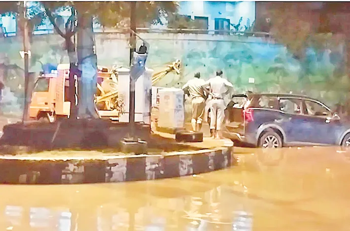 అండర్పాస్ నీటిలో చిక్కుకున్న కారు