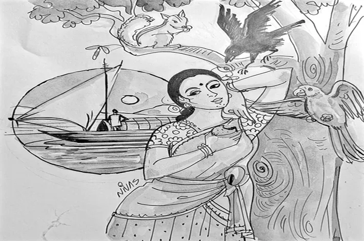ఆ తర్వాత ఇంటావిడ చల్లపిండి పెడ్తే ఆకు పట్టుకు ఏడ్చింది జువ్వి. ‘మీ అయ్యకి నేను వేరే పెడ్తాలేవే’ అన్నా జువ్వికి ఏడుపు ఆగలేదు. జువ్వి మళ్లీ ఏడ్చింది అయ్య కోసం గాదు చిం తాలు మావ కోసం.కళ్లు తుడుచుకొని ఇవతలకొచ్చి చుట్టూ చేరిన కాకులతో, ఉడతలతో, చిలకలతో అంది.‘మా మావ పడవ ధరణికోట రేవు కాడుంటది. మీరెళ్లి నేను మావకోసం ఏడవలేదని చెప్పండే! నవ్వానని చెప్పండేం!’ అంటూ గలగ లా నవ్వింది.