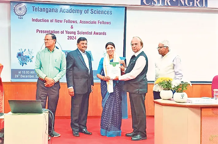 వనపర్తి టౌన్, డిసెంబర్ 24: వనపర్తి పట్టణం కు చెందిన పగడాల అలివేలు,గోపాల్ ల కుమార్తె డా. పగిడాల సౌజన్య బుధవారం తెలంగాణ అకాడమీ ఆఫ్ సైన్సెస్ (టీ ఎ ఎస్)నుండి ఐ ఐ టి, హైదరాబాద్ డైరెక్టర్ చేతుల మీదుగా అసోసియేట్ ఫెలో అవార్డ్ ను అందుకున్నారు.