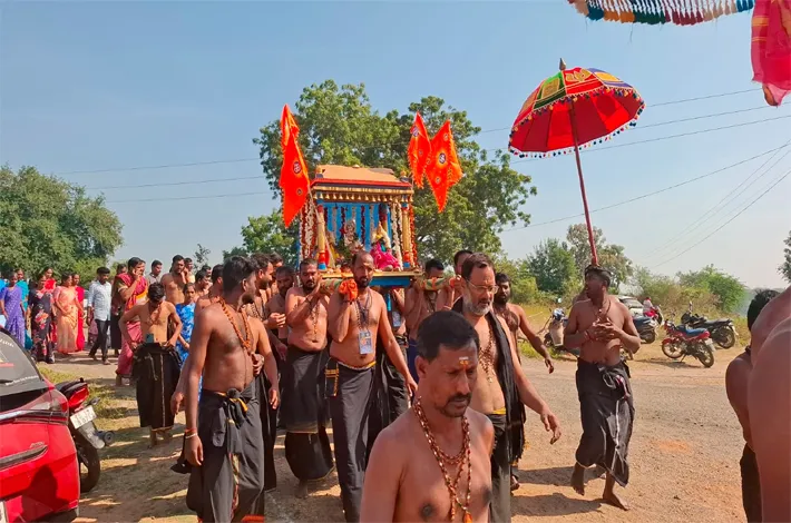 అనంతరం స్వామివారి ఉత్సవ విగ్రహాన్ని పల్లకిలో ఉంచి గ్రామ ప్రధాన వీధుల్లో ఊరేగించారు. అయ్య ప్ప భక్తుల సంకీర్తనలు, నృత్యాల మధ్య సోన్ గ్రామ సమీపంలోని గోదావరి నది తీరానికి పాదయాత్రగా పల్లకి సేవను తీసుకెళ్లారు. నది లో స్వామివారికి వివిధ రకాల పువ్వులు, నదీజలం, పంచామృతంతో అభిషేకం చేసి ప్రత్యేక హారతినిచ్చారు.