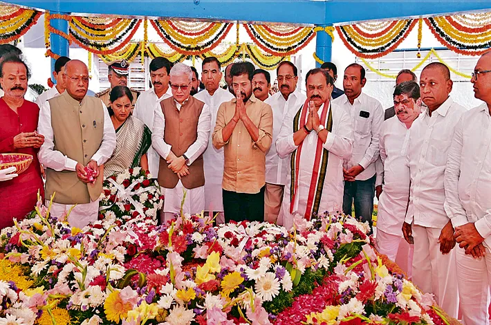 నేటి యువత గాంధీజీ కన్న కలలను సాకారం చేయడానికి కృషి చేయాలని పిలుపునిచ్చారు. కార్యక్రమంలో మంత్రులు పొంగులేటి శ్రీనివాస్రెడ్డి, పొన్నం ప్రభాకర్, తుమ్మల నాగేశ్వరరావు, కొండా సురేఖ, ఎమ్మెల్సీ, పీసీసీ చీఫ్ మహేశ్కుమార్గౌడ్, ప్రభుత్వ సలహాదారులు వేం నరేందర్రెడ్డి, హర్కర వేణుగోపాల్రావు, షబ్బీర్ అలీ, బీసీ కమిషన్ చైర్మన్ నిరంజన్, సీఎస్ శాంతికుమారి, డీజీపీ డాక్టర్ జితేందర్,