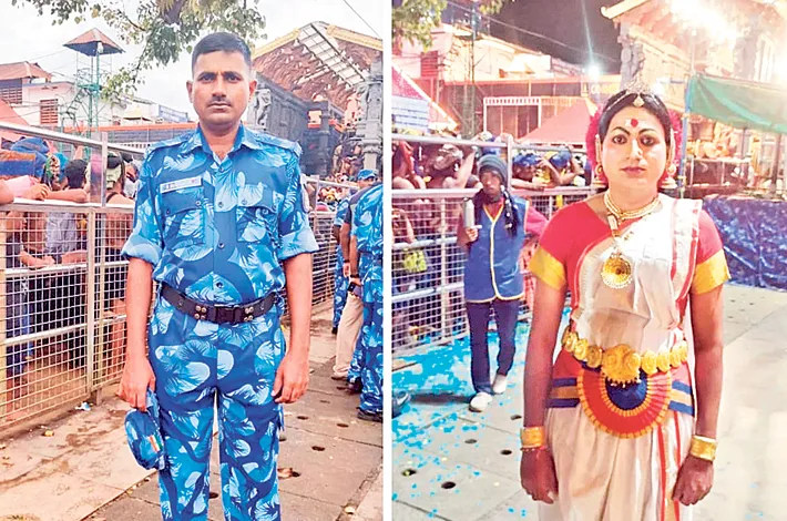 అయ్యప్ప స్వా మి మాలధారణతో వచ్చే భక్తుల మధ్య అయ్య ప్ప స్వామి తల్లి పార్వతి దేవి వేషంలో సుధాకర్ దర్శనమివ్వడం శబరిమలలో ప్రత్యేక ఆకర్షణగా మారింది.ఈ సందర్భంగా ఆయన వేషధారణను చూసిన అయ్యప్ప భక్తులు భక్తి పారవశ్యంలో మునిగి,జయజయ ధ్వానాలతో హర్షం వ్యక్తం చేశారు.తెలంగాణకు చెందిన జవాన్ శబరిమలలో ఇలా సంప్రదాయ,ఆధ్యాత్మిక విలువలను చాటుతూ సేవలు అందించడం గర్వకారణమని భక్తులు,స్థానికులు ప్రశంసలు కురిపిస్తున్నారు.భద్రతా విధులతో పాటు భక్తి భావాన్ని ప్రతిబింబించిన ఈ ఘటన శబరిమల యాత్రలో ప్రత్యేక ముద్ర వేసింది.