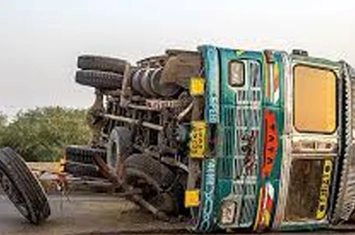 మార్బుల్స్ లోడుతో వెళ్తున్న లారీ బోల్తా.. ఇద్దరు కూలీలు మృతి
