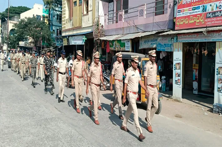 ధర్మపురి,డిసెంబర్12 (విజయక్రాంతి): 2వసాధారణ గ్రామ పంచాయతీ ఎన్నికల్లో భాగంగా జగిత్యాల జిల్లా ఎస్పీ అశోక్ కుమార్ ఉత్తర్వుల మేరకు జగిత్యాల డీఎస్పీ రఘుచందర్ సూచనలతో ధర్మపురి సీఐ రామ్ నరసింహారెడ్డి ఆధ్వర్యంలో పోలీసు కవాతు నిర్వహించారు. నేరేళ్ల, రాయపట్నం, వెల్గటూర్ గ్రామాలలో ఫ్లాగ్ మార్చి నిర్వహించారు.