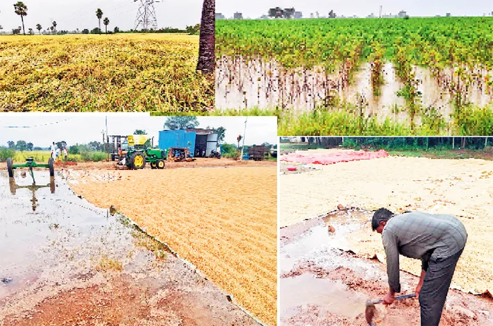 కళ్ల ముందే విలు వైన పంట నీటి పాలవుతుంటే చేసేది లేక, వరుణ దేవుడా నష్టాలను భరించే శక్తి తమకు లేదంటూ వేడుకున్నారు. కోతకొచ్చిన వరి అనేక ఎకరాల్లో నేలవారింది. మార్కెట్యార్డుల్లో అమ్మకానికి తీసుకెళ్లిన ధాన్యం తడిసి ముద్దయింది. రాసుల చుట్టూ చేరిన నీటిని తొలగించడానికి రైతులు నానా తంటాలు పడుతున్నారు.