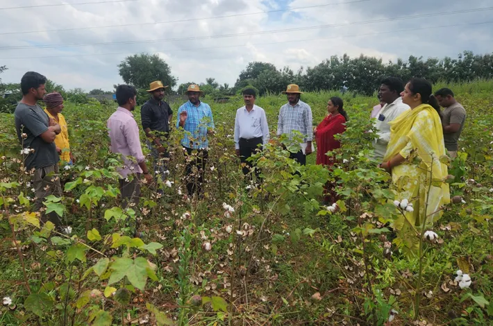 టేకులపల్లి (విజయక్రాంతి): కృషి విజ్ఞాన కేంద్రం శాస్త్రవేత్తల బృందం టేకులపల్లి మండలంలోని వెంకట్యాతండా గ్రామంలో గురువారం క్షేత్ర సందర్శన చేశారు. ఈ కార్యక్రమంలో సేద్య విభాగం శాస్త్రవేత్త, ప్రోగ్రాము కోఆర్డినేటర్ డాక్టర్ టి భరత్, విస్తరణ శాస్త్రవేత్త డాక్టర్ ఎం శరత్, ఉద్యాన శాస్త్రవేత్త బి శివ, ఇల్లందు ఏడిఏ లాల్ చంద్, టేకులపల్లి ఏవో అన్నపూర్ణ, ఏఈఓ విశాల చౌహన్ పాల్గొన్నారు. ఈ సందర్బంగా డాక్టర్ టి భరత్ రైతులకు ప్రస్తుతం పంటల్లో ఎదుర్కొంటున్న సమస్యలకు పరిస్కారం మార్గాల గురించి వివరిస్తూ.. పత్తిలో ప్రస్తుత వాతావరణ పరిస్థితిలో పత్తిలో గులాబీ రంగు పురుగు ఆశించే అవకాశం ఉందన్నారు. దీని నివారణకు 1 మిలీ. ప్రోఫినోపాస్ లేదా 1.5 గ్రాముల దియోడికార్చ్ను లీటర్ నీటిలో కలిపి పిచికారీ చేయాలని తెలిపారు.