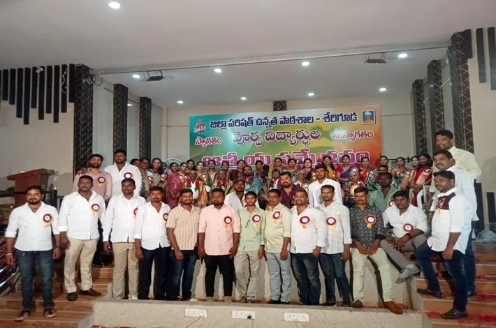 ఇబ్రహీంపట్నం, జూలై 28 : ఇబ్రహీంపట్నం మండలం శేరిగూడ జెడ్పీహెచ్ఎస్ 2007 బ్యాచ్ విద్యార్థులు ఆదివారం మంగళ్పల్లిలోని ఓ ఫంక్షన్ హాల్లో పూర్వ విద్యార్థుల సమ్మేళనం నిర్వహించారు. ఈ సందర్భంగా తమకు విద్యాబుద్ధులు నేర్పిన ఉపాధ్యాయులను సత్కరించారు. ఆత్మీయ పలకరింపులు, ఆలింగనాల నడుమ నాటి మధుర స్మృతులను నెమరువేసుకున్నారు.