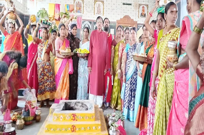 మోతె: మండల పరిధిలోని నరసింహపురం గ్రామంలో గ్రామ దేవతలకు అభిషేకాలు నిర్వహించడం జరిగిందని రామాలయ చైర్మన్ కొండా లక్ష్మయ్య చెప్పారు. లక్ష దీపోత్సవం శనివారం మండల పరిధిలోని నరసింహపురం గ్రామంలో కార్తీక మాసం సందర్భంగా గ్రామ దేవతలకు గంగ జలంతో అభిషేకం చేసి గ్రామంలో ఉన్న గంగాదేవి బ్రిడ్జి మైసమ్మ బొడ్రాయి వంటి దేవాది దేవతలకు పసుపు కుంకుమలు పువ్వులు పాల కాయలు నైవేద్యములు సమర్పించి గ్రామంలో చిన్న పెద్దలు కులాల మతాల అతితంగా ప్రతి ఒక్కరు బ్యాండ్ భాజాలతో వీధులన్నీ కలియతిరిగి ఘనంగా పూజలు నిర్వహించారు. అనంతరం లక్షదీపాలతో అభిషేకం చేసి దేవాది దేవుళ్లకు మహిమ పరిచారు. జల బిందెలతో అభిషేకం నిర్వహించడం జరిగింది. అనంతరం గ్రామ ప్రజలందరికీ అన్న దానం చేశారు. ఈ కార్యక్రమంలో దేవాలయ చైర్మన్ కొండలక్ష్మయ్య, మాజీ ఎంపీపీ శీలం ఉమా సైదులు, సునీత, గ్రామస్తులు కమిటీ సభ్యులు గ్రామ దేవాలయం అర్చకులు అజయ్ కుమార్, తదితరులు పాల్గొన్నారు.
