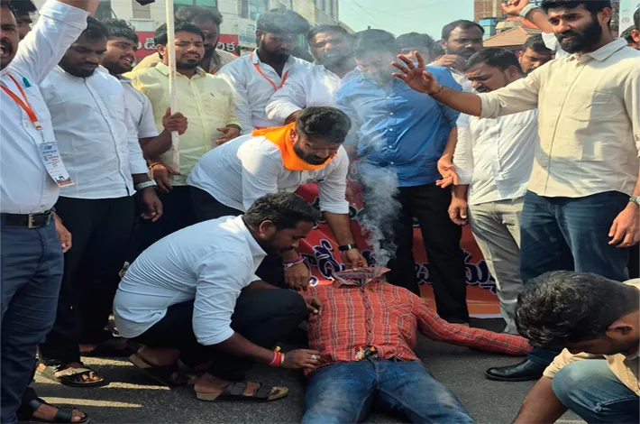 కాకతీయ యూనివర్సిటీ, డిసెంబర్ 23 (విజయక్రాంతి): బంగ్లాదేశ్ లో హిందువుల పై జరుగుతున్న మారణకాండకు నిరసనగా ఏబీవీపీ ఆధ్వర్యంలో కే యూ క్రాస్ వద్ద మానవహారం నిర్వహించి, బంగ్లాదేశ్ దిష్టిబొమ్మ దహనం చేశారు. ఈ సందర్భంగా రాష్ట్ర కార్యదర్శి మాచెర్ల రాంబాబు మాట్లాడుతూ బంగ్లాదేశ్ లో మైనారిటీలు ముఖ్యంగా హిందువులకు రక్షణ లే దని, ఆ దేశంలో హిందువులపై జరుగుతున్న మారణకాండను ఏబీవీపీ తీవ్రంగా ఖండిస్తుందన్నారు.