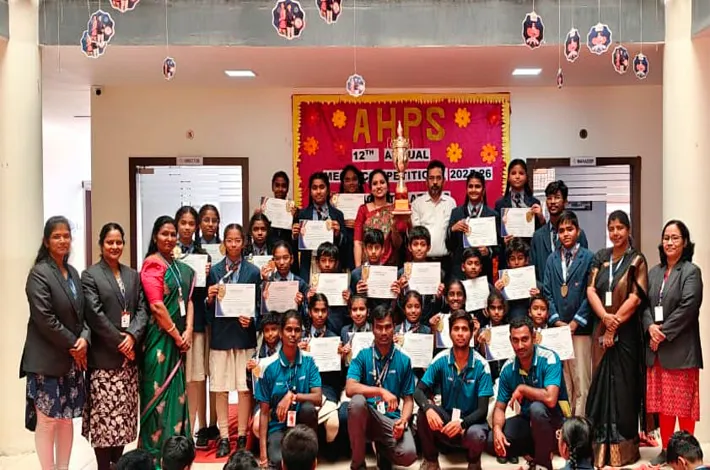 అమీన్ పూర్, అక్టోబర్ 16 : ఢిల్లీలో ఈనెల 6, 7 తేదీల్లో నిర్వహించిన అకాడమిక్ హైట్స్ పబ్లిక్ స్కూల్ 12వ వార్షిక మెగా పోటీలలో 2025-2026 లో అత్యుత్తమ ప్రదర్శన ప్రకటించడం గర్వంగా ఉందని డైరెక్టర్ సీహెచ్.శ్రీనివాసరావు, ఆర్.శిరీష తెలిపారు. ఈ పోటీలో పాల్గొన్న 94 మందిలో తమ పాఠశాల విద్యార్థులు 26 బంగారు, 27 వెండి, 26 కాంస్య పతకాలు గెలుచుకున్నారని చెప్పారు. ఈ సందర్భంగా విజేతలను అభినందించి సత్కరించారు. వచ్చే ఏడాది పాఠశాల అగ్ర బహుమతి గెలుచుకుంటుందని డైరెక్టర్ శ్రీనివాసరావు విశ్వాసం వ్యక్తం చేశారు.