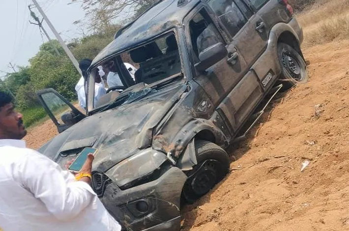 గుర్రంపోడు: నాగార్జునసాగర్ ఎమ్మెల్యే కుందూరు జైవీర్రెడ్డి కాన్వాయ్లోని ఓ స్కార్పియో ప్రయాదానికి గురైంది. వాహనం అదుపుతప్పి రోడ్డు పక్కకు దూసుకెళ్లి పల్టీకొట్టింది. నల్లగొండ జిల్లా గుర్రంపోడు మండలం చేపూర్ గ్రామ శివారులో మంగళవారం ఈ ఘటన జరిగింది. గుర్రంపోడులోని ఆలయ వార్షికోత్సవాల్లో పాల్గొనేందుకు ఎమ్మెల్యే వెళ్తుండగా ఈ ప్రమాదం చోటు చేసుకుంది. వాహనం అదుపుతప్పి రోడ్డు వెంట ఉన్న విద్యుత్ ట్రాన్స్ఫార్మర్ను ఢీకొట్టడంతో ఒక్కసారిగా మంటలు వచ్చాయి. కారులోని ఇద్దరికి స్వల్పగాయాలైనట్లు తెలిసింది. ప్రాణనష్టం జరగకపోవడంతో కాంగ్రెస్ శ్రేణులు ఊపిరి పీల్చుకున్నాయి.