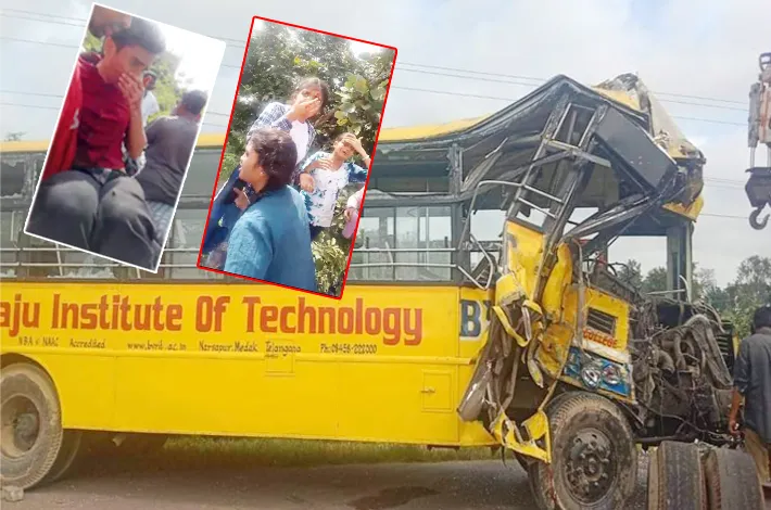 మెదక్,(విజయక్రాంతి): నర్సాపూర్ సమీపంలో ఘోర రోడ్డు ప్రమాదం శుక్రవారం జరిగింది. స్థానిక బీవీఆర్ఐటి ఇంజనీరింగ్ కాలేజీ బస్సులు హైదరాబాద్ నుండి నర్సాపూర్ మీదుగా కాలేజీకి చేరుకుంటాయి. అదే తరుణంలో స్టానిక్ క్లాసిక్ గార్డెన్ సమీపంలో ఎదురెదురుగా రెండు బస్సులు ఢీ కొనడంతో ఒక బస్సుకి చెందిన డ్రైవర్ నాగరాజు(50) అక్కడికక్కడే మృతి చెందగా, మరో డ్రైవర్ తీవ్రంగా గాయపడ్డాడు. బస్ లో ప్రయాణిస్తున్న విద్యార్ధినీ, విద్యార్థులు సుమారు 20 మందికి పైగా గాయపడ్డారు. క్షత్రగాత్రులను హుటా హుటినా హైదరాబాదులోని పలు ఆసుపత్రులకు తరలించారు. సమాచారం అందుకున్న పోలీసులు సంఘటన స్థలికి చేరుకుని మృతదేహాన్ని స్వాధీనం చేసుకుని మార్చురీకి తరలించారు. పరిస్థితిని సమీక్షించి ట్రాఫిక్ ను తొలగించేందుకు చర్యలు చేపట్టారు. ఒక్కసారిగా జరిగిన ఈ ఘటనతో పలువురు విద్యార్థులు షాక్ కు గురయ్యారు.