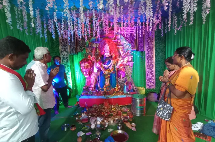 కొండపాక (విజయక్రాంతి): కొండపాక మండలం దుద్దెడ గ్రామంలో శివాలయం వద్ద ఉషోదయ యూత్ అసోసియేషన్ ఆధ్వర్యంలో దేవీ నవరాత్రి ఉత్సవాలలో భాగంగా బుధవారం రోజున సరస్వతి అమ్మవారిగా దర్శనమిచ్చారు. అమ్మవారి మండపానికి విచ్చేసిన అడిషనల్ కలెక్టర్ శ్రీనివాస్ రెడ్డి అమ్మవారిని దర్శించుకుని ప్రత్యేక పూజలు నిర్వహించారు. ముందుగా ఉషోదయ యూత్ సభ్యులు అడిషనల్ కలెక్టర్ కి స్వాగతం పలికారు. ఈ కార్యక్రమంలో ఉషోదయ యూత్ సభ్యులు ప్రజలు తదితరులు పాల్గొన్నారు.