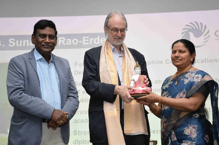 ఆయనతో పాటు న్యూఢిల్లీలోని సెరాఫిమ్ కమ్యూనికేషన్స్ ఎల్ఎల్పీ వ్యవస్థాపకురాలు, ముఖ్య కార్యనిర్వహణాధికారి సునందరావు-ఎర్డెమ్(Sunanda Rao-Erdem), ‘జర్మనీలో వృత్తిపరమైన అవకాశాలు’ అనే అంశంపై విద్యార్థులను ఉద్దేశించి ప్రసంగించారు. యువ ఇంజనీర్లకు ప్రపంచ కెరీర్ అవకాశాలను, ముఖ్యంగా జర్మన్ ఆవిష్కరణ, సాంకేతిక పర్యావరణ వ్యవస్థలో అన్వేషించడానికి మార్గాలను ఆమె ప్రముఖంగా ప్రస్తావించారు. ఈ చర్చలు ఆకర్షణీయమైన ప్రశ్నోత్తరాల కార్యక్రమంతో ముగిశాయి. అతిథులిద్దరూ విద్యార్థుల ప్రశ్నలకు తగిన జవాబులిచ్చి ఆకట్టుకున్నారు. స్కూల్ ఆఫ్ టెక్నాలజీ డైరెక్టర్ ప్రొఫెసర్ రామశాస్త్రి వేదాల, ఈఈసీఈ విభాగాధిపతి ప్రొఫెసర్ టి.మాధవి, సివిల్ ఇంజనీరింగ్ విభాగాధిపతి డాక్టర్ చేపూరి అఖిలేష్, ఈఈసీఈ ప్రొఫెసర్ టి.త్రినాథరావు తదితరులు పాల్గొన్నారు.