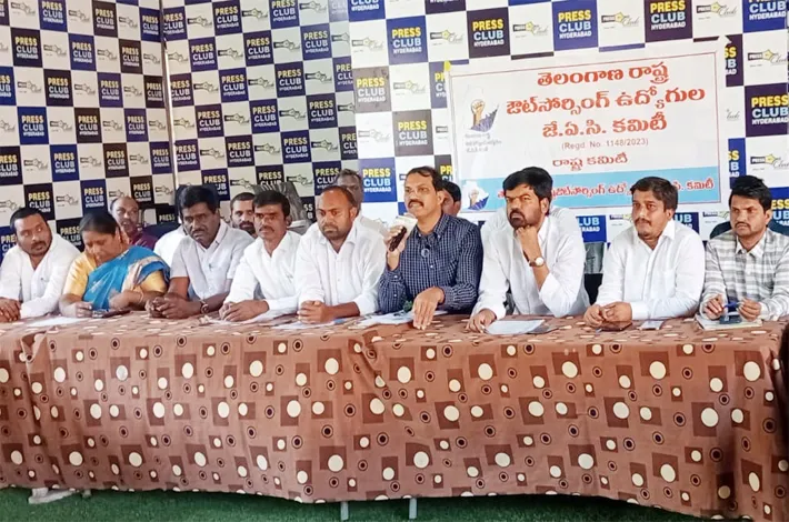 ఖైరతాబాద్, ఫిబ్రవరి 21 (విజయాక్రాంతి): ఔట్ సోర్సింగ్ విధానంలో ఏజెన్సీ వ్యవస్థను తక్షణమే రద్దు చేయాలని ప్రభుత్వమే నేరుగా జీతాలు చెల్లించాలని సీనియర్ జర్నలిస్టు విఠల్, తెలంగాణ ఉద్యమకారులు పృథ్వీరాజ్ రాష్ట్ర ప్రభుత్వాన్ని డిమాండ్ చేశారు. శనివారం సోమాజిగూడ ప్రెస్ క్లబ్లో తెలంగాణ ఔట్ సోర్సింగ్ ఉద్యోగుల జెఎసి కమిటీ ఆధ్వర్యంలో జరిగిన సమావేశానికి వారు ముఖ్య ఆతిధులుగా విచ్చేసి మాట్లాడుతూ ఔట్ సోర్సింగ్ ఉద్యోగులకు చట్టబద్ధమైన ఉద్యోగ భద్రత కల్పించాలన్నారు.