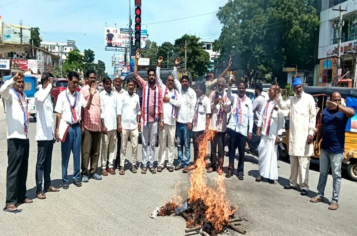 కామారెడ్డి,(విజయక్రాంతి): బీసీ రిజర్వేషన్లపై అన్ని రాజకీయ పార్టీలు డ్రామాలు ఆడుతున్నాయని బీసీ విద్యార్థి సంఘం జిల్లా అధ్యక్షుడు నీల నాగరాజు, బీసీ సంఘం జిల్లా అధ్యక్షులు సాప శివరాములు ఆరోపించారు. శుక్రవారం కామారెడ్డి జిల్లా కేంద్రంలోని నిజాంసాగర్ చౌరస్తాలో బిసి రిజర్వేషన్ల వ్యతిరేకుల దిష్టిబొమ్మను దహనం చేశారు. ఈ సందర్భంగా వారు మాట్లాడుతూ... బీసీ రిజర్వేషన్లపై హైకోర్టు విధించిన స్టేను నిరసిస్తూ బీసీ సంఘాల ఆధ్వర్యంలో మున్సిపాల్ ఆవరణలో ఉన్న మహాత్మ జ్యోతిబాపూలే విగ్రహము నుండి ర్యాలీగా బయలుదేరి నిజాంసాగర్ చౌరస్తా వద్ద బిసి రిజర్వేషన్ల వ్యతిరేకుల దిష్టిబొమ్మ దహనం చేయడం జరిగిందన్నారు.