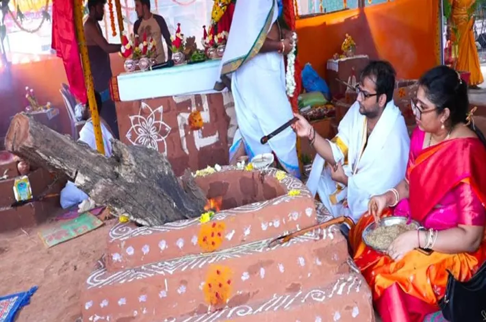 భద్రాద్రి కొత్తగూడెం (విజయక్రాంతి): భద్రాద్రి కొత్తగూడెం జిల్లా పాల్వంచ మండల పరిధిలోని ఈ కనకదుర్గ దేవస్థానం(పెద్దమ్మ గుడి) ఆవరణలో శివాలయం ప్రతిష్ట, ధ్వజ స్తంభం ప్రతిష్ట మహోత్సవాలు నిబంధనలకు విరుద్ధంగా జరిగాయని ఆరోపణలు వెలబడుతున్నాయి. శుక్రవారం ఆలయ అధికారులు జలధివాసం కార్యక్రమాన్ని అంగరంగ వైభవంగా నిర్వహించారు. జలధివాసానికి విచ్చేసే మహిళా భక్తులను పసుపు రంగు వస్త్రాలు ధరించి రావాలని సూచించారు. ఈ కార్యక్రమానికి హాజరైన భక్తులకు కనీసం తీర్థ ప్రసాదాలు ఇవ్వలేదని భక్తులు ఆరోపిస్తున్నారు. ప్రతిష్ట మహోత్సవ పూజా కార్యక్రమాల్లో ఆలయ ఈవో దంపతులు పాల్గొనాలి.