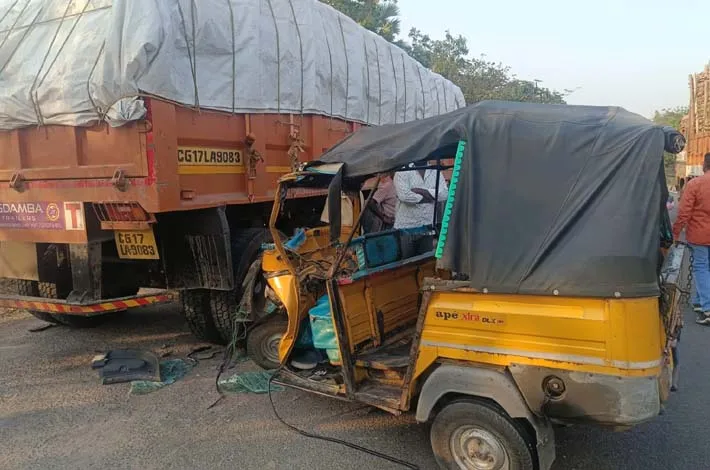 పెద్ద కాల్వల వద్ద ఆగి ఉన్న లారీని ఢీ కొట్టిన ఆటో