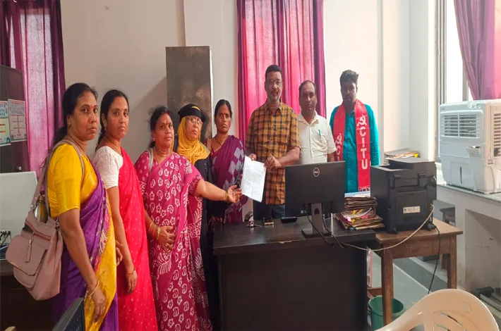 బైంసా, ఏప్రిల్ 27 (విజ యక్రాంతి): ముథోల్ నియోజకవర్గం పనిచేస్తున్న సీడీపీఓపై విచా రణ జరపాలని అంగన్వాడీ వర్కర్స్ హెల్పర్స్ యూనియన్ సిఐటి నాయకులు జిల్లా కార్యాలయంలో ఫిర్యాదు చేశారు. అక్కడ విధులు నిర్వహిస్తున్న సీడీపీఓ ఆ శాఖలో పనిచేస్తున్న ఉద్యోగుల నుంచి అక్రమంగా డబ్బులు వసూలు చేస్తుందని సెలవుల డబ్బులను తమ ఖాతాలో వెయ్యాలని డిమాండ్ చేస్తుందని వారు ఆరోపించారు. వేధింపులకు గురి చేస్తుందని వెంటనే ఆమెపై చర్యలు తీసుకోవాలని కోరారు. ఈ కార్యక్రమంలో అంగన్వాడీ వర్కర్స్ యూనియన్ నాయకులు ఉన్నారు.
