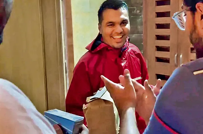 అహ్మదాబాద్, సెప్టెంబర్ 1: దేశంలో ఫుడ్ డెలివరీ వ్యాపారం వేగంగా విస్తరిస్తున్నది. ప్రధాన నగరాల్లో ఎక్కడ చూసినా డెలివరీ ఏజెం ట్లు ఉరుకులు పరుగుల మీద ఆహారాన్ని కస్టమర్లకు సరఫరా చేస్తుంటా రు. మండే ఎండలున్నా.. ట్రాఫిక్ ఉన్నా.. వర్షాలు, వరదలు, పిడుగులు పడినా వారి ప్రయాణం అలుపెరుగక సాగుతూనే ఉంటది. గుజరాత్లో ప్రస్తుతం భారీవర్షాలు కురుస్తున్నాయి. బయటకు వెళ్లి ఆహారం తెచ్చుకోలేని యాష్ అనే వ్యక్తి జొమా టో ఫుడ్ ఆర్డర్ ఇచ్చాడు. బోరున వర్షం పడుతున్నా లెక్కచేయకుండా ఏజెంట్ ఆర్డర్ తీసుకొచ్చాడు. అయితే కష్టమర్కు ఏజెంట్ జన్మదినం అదేరోజు అని జొమాటో తెలిపింది. ఏజెంట్ను ఆశ్చర్యపర్చాలని నిర్ణయించుకొన్న యాష్, అతడి మిత్రులతో కలిసి ఏజెంట్ వచ్చి ఫుడ్ ప్యాక్ అందజేయగానే శుభాకాంక్షలు తెలిపి గిఫ్ట్ అందించారు. దీంతో ఆ ఏజెంట్ సంతోషానికి అవధులు లేవు.