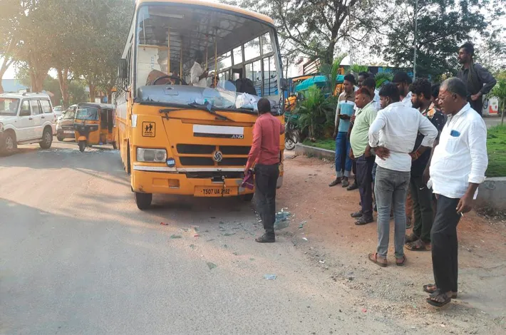 ముందు వెళ్తున్న బస్సు ఆపకుండానే వెళ్లిపోయింది. అయితే వెనకాల నుంచి డీకొన్న బస్సులో విద్యార్థులకు, డ్రైవర్కు స్వల్పగాయాలయ్యాయి. విద్యార్థులను వేరె బస్సు రప్పించి నగరంలోని వారి ఇంటికి పంపించారు.