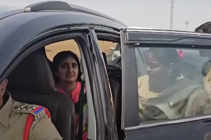 నందిగామ వద్ద, పోలీసులు ఆమె వాహనాన్ని అడ్డగించి, ఆమెను ముందుకు వెళ్లకుండా అడ్డుకున్నారు. తాము నేరుగా పోలీస్ స్టేషన్కు వెళ్తున్నామని, లాంఛనాలు పూర్తి చేయాలని, తమను అనుసరించవద్దని ఆమెకు సూచించామని పోలీసులు ఆమెకు సమాచారం అందించారు. ఆ తర్వాత ఆమెను ఆ ప్రాంతంలోని స్థానిక డ్రైవింగ్ స్కూల్లో ఉంచారు. ఆమె ఫోన్ను కూడా పోలీసులు స్వాధీనం చేసుకున్నారని నివేదికలు సూచిస్తున్నాయి.