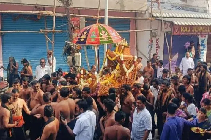ఆదిలాబాద్, (విజయక్రాంతి): ఆదిలాబాద్ లో శ్రీ అయ్యప్ప స్వామి ఆరట్టు ఉత్సవం ను ఘనంగా నిర్వహించారు. స్థానిక శ్రీ రామచంద్ర గోపాల కృష్ణ మఠం నుంచి ఆదివారం ప్రారంభమైన ఆరట్టు ఉత్సవం పట్టణ పురవీధుల గుండా కొనసాగింది. మఠాధిపతి శ్రీ యోగానంద సరస్వతి స్వామీ ఆధ్వర్యంలో అయ్యప్ప భక్తులు చేపట్టిన ఆరట్టు ఉత్సవం అంగరంగ వైభవంగా జరిగింది. ముందుగా అయ్యప్ప స్వామి ఉత్సవ విగ్రహాన్ని పల్లకిలో ఉంచి పట్టణ పురవీధుల గుండా ఊరేగించారు. శోభాయాత్ర లో అయ్యప్ప దీక్షదారులు, భక్తుల భజన కీర్తనలు, అయ్యప్ప స్వామి నామస్మరణతో పట్టణ పురవీధుల మారుమ్రోగాయి. కేరళ నుండి ప్రత్యేకంగా తెప్పించిన డోలు వాయిద్యాలు శోభాయాత్ర లో ప్రత్యేక ఆకర్షణగా నిలిచాయి. దారి పొడవునా మహిళలు భక్తులకు మంగళహారతులతో స్వాగతం పలికారు. ఈ కార్యక్రమంలో సనాతన హిందూ ఉత్సవ సమితి అధ్యక్షుడు ప్రమోద్ కుమార్ ఖత్రి, కాంగ్రెస్ నాయకులు శ్రీకాంత్ రెడ్డి తో పాటు పలువురు భక్తులు పాల్గొన్నారు.