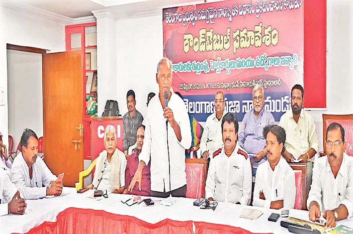 తెలంగాణ ప్రజా నాట్యమండలి ఆధ్వర్యంలో ‘సమగ్రమైన సాంస్కృతిక విధానం కళాకారులకు గుర్తింపు, హెల్త్ ఉద్యోగాలు’ అంశం పై రౌండ్ టేబుల్ సమావేశం బుధవారం హైదరాబాద్ హిమాయత్ మగ్ధూంభవన్లో జరిగింది. తెలంగాణ ప్రజానాట్యమండలి రాష్ట్ర ప్రధాన కార్యదర్శి, సాంస్కృతిక సలహామండలి సభ్యులు పల్లె నర్సింహ అధ్యక్షతన జరిగిన సమావేశంలో సిపిఐ రాష్ట్ర కార్యదర్శి, ఎమ్మెల్యే కూనంనేని సాంబశివ రావు, తెలంగాణ మీడియా అకాడమి చైర్మన్ కె.శ్రీనివాస్ రెడ్డి, తెలంగాణ సాంస్కృతిక సారధి చైర్ డాక్టర్ జి.వి. వెన్నెల, సురవరం ప్రతాప రెడ్డి, తెలుగు విశ్వవిద్యాలయం మాజీ వైస్ ఛాన్సలర్,