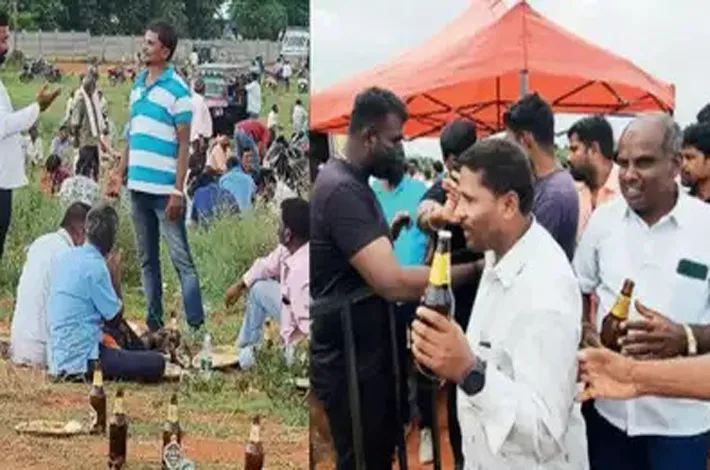 న్యూ ఢిల్లీ: కర్ణాటకలోని చిక్బళ్లాపూర్ నుంచి బీజేపీ ఎంపీగా గెలిచిన సుధాకర్ ఆదివారం సాయత్రం కార్యకర్తలు, అభిమానులకు నిర్వహి ంచిన విందు, మద్యం పార్టీపై కాంగ్రె స్, ఇతర పార్టీల నుంచి తీవ్ర విమర్శలు వెల్లువెత్తుతున్నాయి. మద్యం కోసం కార్యకర్తలు ఎగబడటంతో పో లీసు బందోబస్తు నడుమ క్యూ లైన్ లో మద్యం బాటిళ్లను పంపిణీ చే యాల్సి వచ్చింది. సోషల్ మీడియా లో ఈ క్యూలైన్ల ఫొటోలు, వీడియో లు వైరల్గా మారాయి. ఈ వ్యవహారంపై డిప్యూటీ సీఎం డీకే మాట్లా డుతూ.. ‘చూడండి ఇది బీజేపీ సంస్కృతి’ అంటూ పార్టీ రాష్ట్ర, జాతీయ నేతలకు కౌంటర్ ఇచ్చారు. ఈ వ్యవహారంపై మీరెలాంటి చర్యలు తీసు కుంటారు అని డీకేని ప్రశ్నించగా.. ముందుగా బీజేపీ జాతీ య అధ్యక్షు డు, పార్టీ నేతలు దీనిపై ఏం సమాధానం చెప్తారో చూద్దామన్నారు.