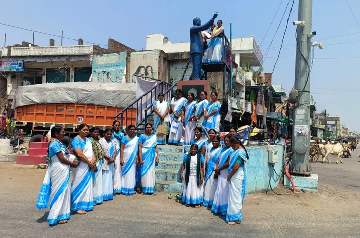 అంబేద్కర్ విగ్రహానికి వినతి పత్రం అందజేసిన ఆశా కార్యకర్తలు