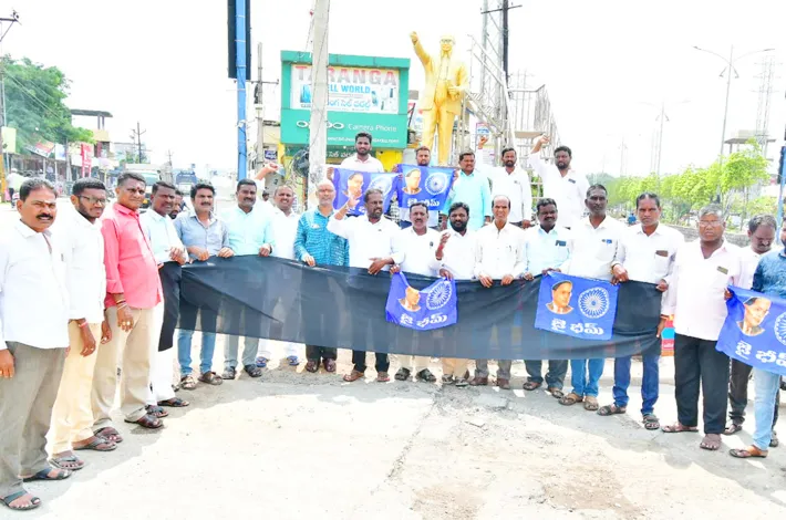 యాదాద్రి భువనగిరి,(విజయక్రాంతి): పోచంపల్లి మండలం భీమనపల్లి గ్రామంలో సామాజిక న్యాయ శిల్పంమైన మహనీయ డా.బీఆర్ అంబేద్కర్ విగ్రహంపై దుండగులు దాడి చేశారు. ఈ దాడిని ఖండిస్తు ఆదివారం యాదాద్రి భువనగిరి జిల్లా కేంద్రంలో అంబేద్కర్ చౌరస్తాలో ఇటుకల దేవేందర్ మాదిగ ఆధ్వర్యంలో కార్యక్రమం నిర్వహించారు. నల్ల జండాలతో నిరసన వ్యక్తం చేసిన అనంతరం భువనగిరి మాజీ మున్సిపల్ చైర్మన్ బర్రె జహంగీర్ మాట్లాడుతూ... భారత రాజ్యాంగ నిర్మాత డా.బీఆర్ అంబేద్కర్ విగ్రహాంపై దాడి సభ్య సమాజం తలదించుకునే ఘటన అని ఆయన పేర్కొన్నారు.