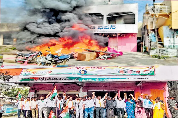 ఫర్నిచర్ను తగలబెట్టిన కాంగ్రెస్ శ్రేణులు