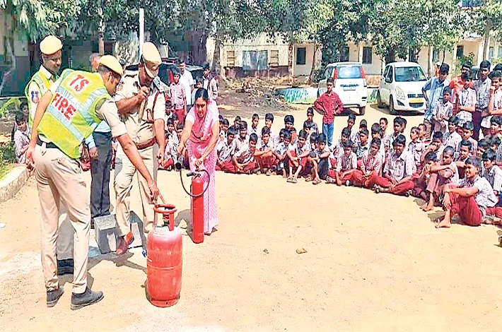 ఇందులో భాగంగా స్టేషన్ ఫైర్ ఆఫీసర్ చంద్రశేఖర్ విద్యార్థులకు ఫైర్ ఎవాక్యుయేషన్ డ్రిల్, ఫైర్ ట్రయాంగిల్, క్లాసెస్ ఆఫ్ ఫైర్స్, టైప్ ఆఫ్ ఫైర్స్ గురించి మన పరిసర ప్రాంతాల్లో కంబస్టబుల్, ఆయిల్, గ్యాస్, మెటల్ అగ్ని ప్రమాదాలు సంభవించినప్పుడు వాటిని వివిధ రకాల ఫైర్ ఎక్స్టింగ్ విషెర్స్ వాడి ఏవిధంగా నిర్మూలించవచ్చు అను విషయాలను సవివరంగా వివరించారు.