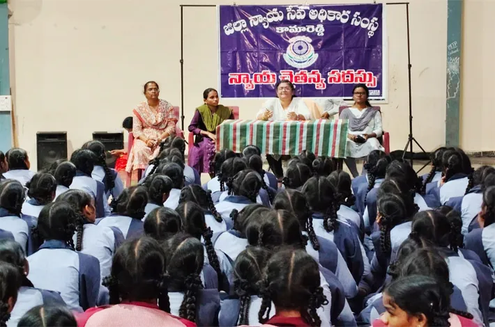కామారెడ్డి,(విజయక్రాంతి): తెలంగాణ రాష్ట్ర న్యాయసేవాధికార సంస్థ ఆదేశాల మేరకు శుక్రవారం కామారెడ్డి జిల్లా న్యాయ సేవాధికార సంస్థ కామారెడ్డి ఆధ్వర్యంలో జిల్లా కార్యదర్శి T. నాగరాణి మహాత్మా జ్యోతిబా ఫూలే రెసిడెన్షియల్ స్కూల్, కాలేజీ, జంగంపల్లి గ్రామంలో న్యాయ అవగాహన కార్యక్రమం నిర్వహించారు. పరిసర ప్రాంతాలు తనిఖీ చేశారు. ఈ కార్యక్రమంలో న్యాయమూర్తిT. నాగరాణి న్యాయ సేవల ప్రాధాన్యం, ఉచిత న్యాయ సహాయం, జిల్లా న్యాయ సేవాధికార సంస్థ (DLSA) చేపడుతున్న వివిధ న్యాయ సేవా కార్యక్రమాలు గురించి వివరించారు.