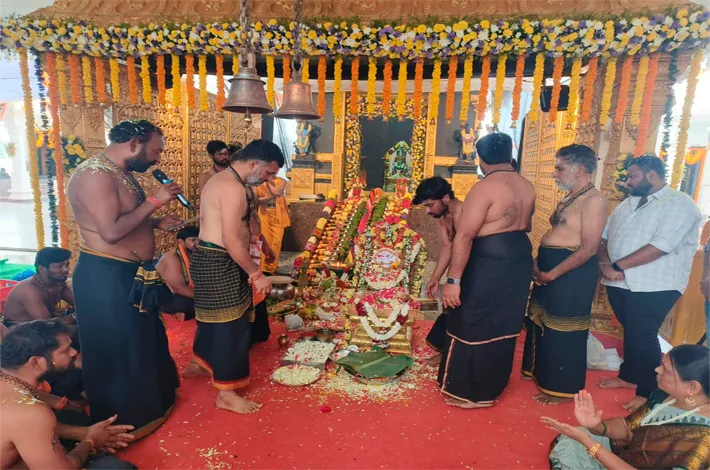 మొయినాబాద్, డిసెంబర్ 3 (విజయక్రాంతి): స్వామియే శరణం అయ్యప్ప అంటూ అయ్యప్ప నామస్మరణతో కనకమామిడి అయ్యప్ప దేవాలయ ప్రాంగణం మారుమోగింది. బుధవారం మండల పరిధిలోని కనకమామిడి అయ్యప్ప గుట్టపై అయ్యప్ప మహాపడి పూజను గురుస్వాములు రఘునందన్ రెడ్డి, సుదర్శన్ రెడ్డి, మహేందర్ రెడ్డి, వేణు గురుస్వాముల ఆధ్వర్యంలో ఘనంగా నిర్వహించారు.