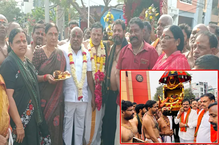 స్వామి పల్లకి మోసిన ఎమ్మెల్యే, మాజీ మంత్రి...