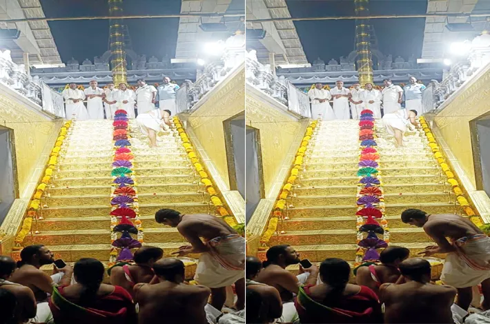 తంత్రి బ్రహ్మశ్రీ తక్కేకోరమంగళం దామోదరన్ నంబూత్రి కేరళ నుంచి విచ్చేసి ఆచారవర్ణం, స్థలశుద్ధి, వాస్తు హోమం ప్రసాద పూజ నిర్వహించారు. సాయంత్రం 6.30 గంటలకు దేవాలయంలోని పంచలోహ పదునెట్టాంబడిపై కేరళ సంప్రదాయంతో తాంత్రిక పద్ధతిలో పడిపూజ నిర్వహించినట్లు తెలిపారు.