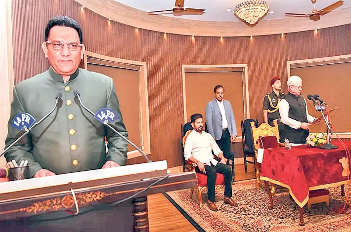 పీసీసీ అధ్యక్షుడు మహేష్కుమార్గౌడ్, సీఎస్ రామ కృష్ణారా వు, డీజీపీ శివధర్రెడ్డి హాజరయ్యా రు. అజారుద్దీన్ ప్రమాణస్వీకారం చేసిన అనంతరం గవర్నర్ జిష్ణుదేవ్ వర్మతో పాటు సీఎం , మంత్రులు, ఎమ్మెల్యేలు శుభాకాంక్షలు తెలిపారు. మంత్రిగా అజారుద్దీన్ ప్రమాణ స్వీకారం చేయడంతో, సీఎం రేవంత్రెడ్డితో కలిపి మొత్తం క్యాబినెట్ 16కు చేరుకున్నది. ఇంకా రెండు బెర్తులు ఖాళీగా ఉన్నాయి.