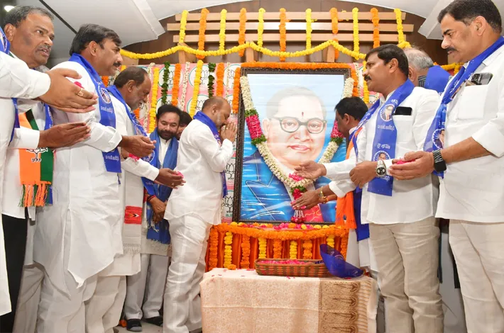 హైదరాబాద్,(విజయక్రాంతి): అంబేద్కర్ జయంతి పురస్కరించుకుని సోమవారం తెలంగాణ బీజేపీ కార్యాలయంలో కేంద్ర మంత్రి, రాష్ట్ర అధ్యక్షులు కిషన్ రెడ్డి, ఓబీసీ మోర్చా జాతీయ అధ్యక్షులు డాక్టర్ లక్ష్మణ్, సంస్థాగత ప్రధాన కార్యదర్శి సీహ్చ్ శేఖర్ జీ తదితరులతో కలిసి బాబా సాహెబ్ అంబేద్కర్ చిత్రపటానికి పూలమాల వేసి నివాళులు అర్పించారు. ఈ సందర్భంగా బండి సంజయ్ మాట్లాడుతూ... శ్యామా ప్రసాద్ ముఖర్జీ, పండిట్ దీన్ దయాళ్ ఆలోచనా విధానాన్ని బలపరిచిన అంబేద్కర్ కి చరిత్రలో సముచిత స్థానం కల్పించడమే లక్ష్యంగా ప్రధానమంత్రి నరేంద్ర మోదీ ప్రభుత్వం పంచ తీర్థాలను ఏర్పాటు చేసిందని తెలిపారు. అంబేద్కర్ ఆశయాలకు అనుగుణంగా బీజేపీ ప్రభుత్వం మహిళా రిజర్వేషన్లు, ఆర్టికల్ 370 రద్దు, దళిత, గిరిజన బిడ్డలకు రాష్ట్రపతి పదవులు దక్కేలా చేసిందని కొనియాడారు.