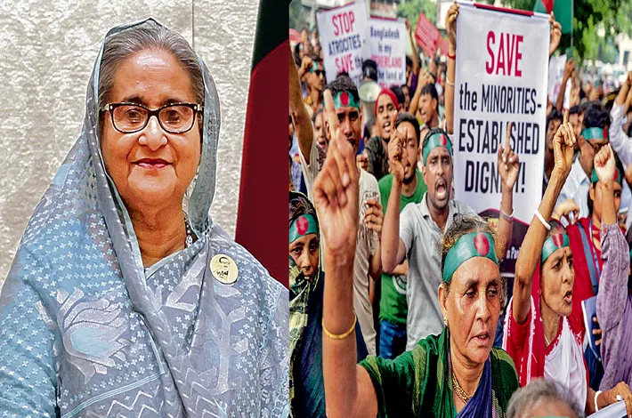 బంగ్లాదేశ్లో అల్లర్లు ఇంకా ఆగటంలేదు. తాజాగా నిరసనకారులు మైనారి టీలతోపాటు అవామీలీగ్ పార్టీకి అనుకూలంగా పనిచేసిన ప్రభుత్వ అధికా రులపై పడ్డారు. ఆఫీసుల్లోకి దూసుకుపోయి అధికారులతో బలవంతంగా రాజీనామాలు చేయిస్తున్నారు. మైనారిటీలపై దాడులు సరేసరి. మతఛాం దసవాదుల దాడులను నిరసిస్తూ దేశంలోని పలు ప్రాంతాల్లో ఆదివారం హిందువులు, ఇతర మైనారిటీలు భారీ ర్యాలీలు నిర్వహించారు. దాడులు ఆపాలని తాత్కాలిక ప్రభుత్వ చీఫ్ మహ్మద్ యూనస్ పిలుపునిచ్చినా పట్టించుకోవటంలేదు. ‘కొన్ని చర్యలవల్ల మీ పోరాటమంతా వృథా అయ్యే పరిస్థితి వచ్చింది. ఈ సమయంలో విఫ లం కావొద్దు. వారు మనదేశ పౌరులు కారా? వారి కుటుంబాలను రక్షించలేరా? వాళ్లు మన సోదరులు. మన మంతా కలిసి పోరాడాలి. కలిసి ఉండాలి’ అని శనివారం ఆయన రంగ్పూర్ పర్యటనలో పిలుపునిచ్చారు. కానీ, ఉద్యమకారుల్లో కొన్ని వర్గాలు ఆయన మాటలను పట్టించుకోలేదు.