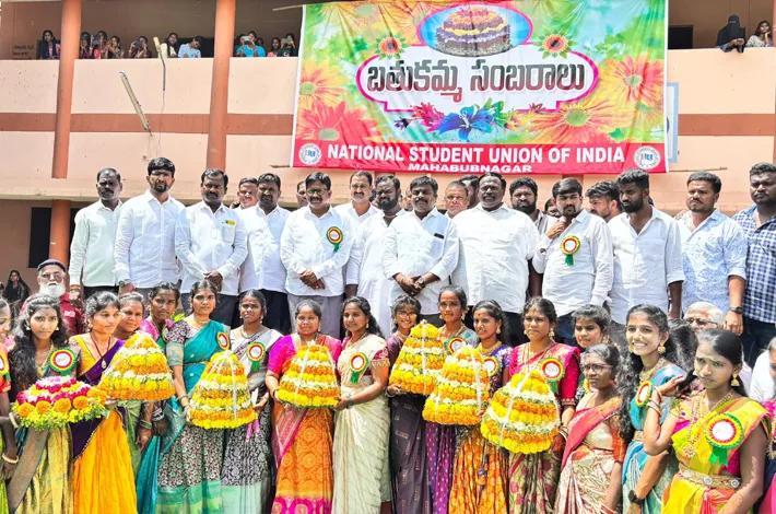 మహబూబ్ నగర్ (విజయ క్రాంతి) : మహబూబ్ నగర్ జిల్లా కేంద్రంలోని ఎన్టిఆర్ డిగ్రీ కళాశాల ప్రాంగణంలో తీరొక్క పువ్వులను తీసుకువచ్చి బతుకమ్మలను పేర్చి బతుకమ్మ సంబరాలు ఘనంగా జరిగాయి. విద్యార్థినీలు బతుకమ్మల చుట్టూ సాంస్కృతిక పాటలకు ప్రత్యేక నృత్యాలు చేయడంతో పాటు బతుకమ్మ ఆడారు. ఈ వేడుకలకు ఎమ్మెల్యే యెన్నం శ్రీనివాస్ రెడ్డి హాజరై ప్రతిభ కనబరిచిన విద్యార్థులకు ప్రత్యేక బహుమతులను ప్రధానం చేశారు.