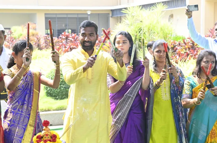 కలెక్టర్ ఆయన సతీమణితో కలిసి ఉద్యోగులతో బతుకమ్మ ఆటపాటల్లో పాల్గొన్నారు. కలెక్టర్ మాట్లాడుతూ... మన పండగ మన సంస్కృతి మన సాంప్రదాయానికి ప్రతీక ఆడపడుచుల ఔన్నత్యానికి సూచిక అన్నారు. తొమ్మిది రోజులు ఆడబిడ్డలు అందరూ కలిసి తీరొక్క పూలు, తీరొక్క రంగులతో ఆడుకునే గొప్ప పండగ బతుకమ్మ అన్నారు. మహిళలు ఎంతో ఇష్టంతో పూలను పేర్చి గౌరమ్మను తీర్చి కోరిన కోరికలు ఫలించాలనే నమ్మకంతో ఈ బతుకమ్మ పండుగ జరుపుతారని, దేశంలో పూలను పూజించి ప్రకృతిని ప్రేమించే గొప్ప పండుగ బతుకమ్మ అని ఇలాంటి సంస్కృతి మన తెలంగాణలోనే ఉందని, బతుకమ్మ పండుగను అధికారికంగా రాష్ట్ర పండుగగా గుర్తించారని అన్నారు. ప్రజలందరూ సంతోషంగా జరుపుకోవాలని జిల్లా ప్రజలకు బతుకమ్మ పండుగ శుభాకాంక్షలు తెలిపారు. ఈ కార్యక్రమంలో అదనపు కలెక్టర్లు పి. రాంబాబు, గౌతమ్ రెడ్డి, జిల్లా సంక్షేమ శాఖ అధికారి నరేష్, జిల్లా పంచాయతీ అధికారి రఘువరన్, వివిధ జిల్లా శాఖ అధికారులు, మహిళా ఉద్యోగులు, సిబ్బంది, తదితరులు పాల్గొన్నారు.