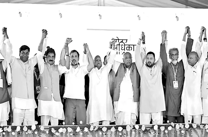 కూటమిని సమన్వయంతో సరైన వ్యూహంతో ముం దుకి నడిపించలేకపోవటం, తేజస్వీ యాద వ్ ఒంటెద్దు పోకడలు, ప్రజా సమస్యలను వదిలేసి బీహారీ పేద ప్రజలకు అవసరం లేని ‘ఓట్చోరీ’ లాంటి అంశాన్ని రాహుల్ గాంధీ విస్తృతంగా ప్రచారం చేయటం మహాఘఠ్బంధన్ను పరాజయం అంచున నిలబెట్టాయి.
