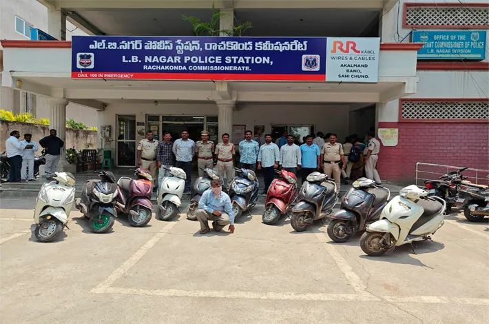 ఎల్బీనగర్, ఏప్రిల్ 21 : విలాసవంతమైన జీవితానికి అలవాటు పడి అవసరాల కోసం సులభంగా డబ్బులు సంపాదించడానికి నివాస పార్కింగ్ స్థలాల్లో పార్కు చేసిన 10 బైకులను దొంగిలించి మెట్రో పార్కింగ్ స్టేషన్లో దాచిపెడుతున్న ఒక దొంగ పోలీసులకు చిక్కాడు.