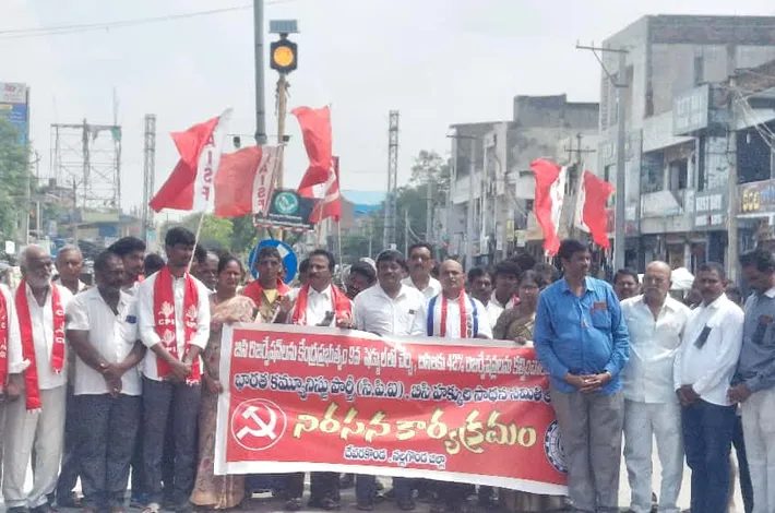 దేవరకొండ (విజయక్రాంతి): బీసీలకు 42% రిజర్వేషన్లలను కల్పించాలని డిమాండ్ చేస్తూ బుధవారం భారత కమ్యూనిస్టు పార్టీ (సి.పి.ఐ), బీసీ హక్కుల సాధన సమితి ఆధ్వర్యంలో దేవరకొండలో నల్ల బ్యాడ్జిలతో నిరసన ర్యాలీ నిర్వహించి బస్ స్టాండ్ ముందు 167 జాతీయ రహదారిపై సిపిఐ శ్రేణులు నిరసన ప్రదర్శన చేశారు. ఈ కార్యక్రమానికి ముఖ్య అతిధిగా హాజరైన సిపిఐ రాష్ట్ర కార్యవర్గ సభ్యులు పల్లా నర్సింహా రెడ్డి మాట్లాడుతూ బీసీ బిల్లులను ఆమోదించి, రిజర్వేషన్లను అమలు చేయాల్సిన బాధ్యత కేంద్ర ప్రభుత్వంపైన ఉందని స్పష్టం చేశారు.
