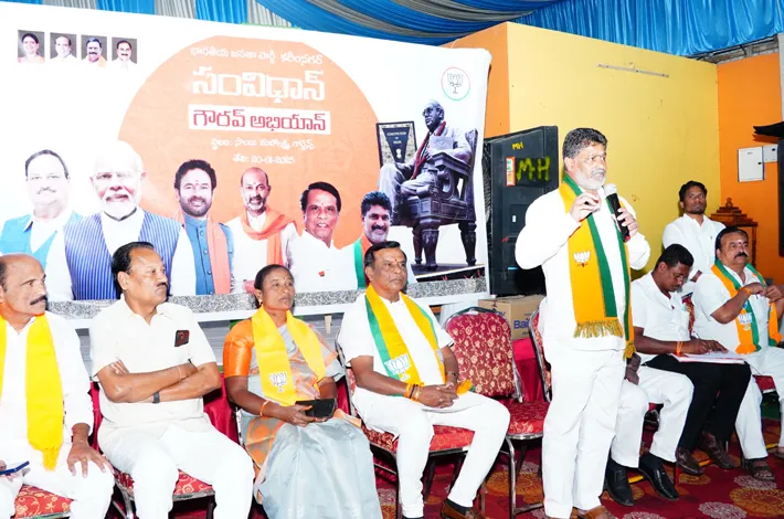 కాంగ్రెస్ విభజన ఎజెండాకు వ్యతిరేకంగా దేశాన్ని రక్షించడంలో అంబేద్కర్ కీలక పాత్ర పోషించారన్నారు. ముఖ్యంగా బిజెపి ఎప్పుడు అంబేద్కర్ అడుగజాడల్లోనే నడుస్తుందన్నారు. అంబేద్కర్ కు భారతరత్న ఇవ్వడానికి బిజెపి కృషి చేసిందన్నారు. అంబేద్కర్ రాజ్యాంగ స్ఫూర్తితో ప్రధాని నరేంద్ర మోడీ నాయకత్వంలో సబ్ కా సాత్ సబ్ కా వికాస్, సబ్ కా విశ్వాస్, సబ్ కా ప్రయాస్ లక్ష్యంగా పనిచేస్తుందన్నారు. ముఖ్యంగా సామాజిక న్యాయం కోసం కృషి చేసేందుకు, శాశ్వత స్ఫూర్తిని రగిలించేందుకు అంబేద్కర్ జీవితానికి సంబంధించిన కీలక ప్రదేశాలను బిజెపి మోడీ ప్రభుత్వం పంచ తీర్థంగా మార్చిందన్నారు. అంబేద్కర్ రాజ్యాంగం చూపిన బాటతోనే 370 ఆర్టికల్ రద్దు జరిగిందన్నారు. బిజెపి రిజర్వేషన్ లను పొడిగించిందని, అట్రాసిటీ చట్టాన్ని మరింత బలోపేతం చేసిందన్నారు. బిజెపి అంబేద్కర్ ను గౌరవిస్తూ ఆయన అడుగుజాడల్లో నడుస్తుంటే కాంగ్రెస్ బిజెపి పై దుష్ప్రచారాన్ని ప్రారంభించిందని, రాజ్యాంగాన్ని మారుస్తుందని, రిజర్వేషన్లు ఎత్తివేస్తుందని ప్రజలను రెచ్చగొట్టే ప్రయత్నం చేసిందన్నారు. ముఖ్యంగా బిజెపి శ్రేణులు కాంగ్రెస్ దుష్ప్రచారాలను తిప్పి కొట్టాలని, సంవిదాన్ గౌరవ్ అభియాన్ కార్యక్రమంలో భాగంగా జిల్లా వ్యాప్తంగా పార్టీ నిర్దేశించిన మేరకు కార్యక్రమాలు విజయవంతంగా జరగాలన్నారు. ముఖ్యంగా షెడ్యూలు కులాలు, తెగలు, మేధావులు, స్త్రీలు, యువత వంటి వర్గాల్లో, కాలేజీలు, హాస్టల్లో ప్రచారం నిర్వహించాలని, రాజ్యాంగ ప్రతులు పంపిణీ చేయాలన్నారు.