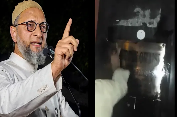 ఒవైసీ అధికారిక నివాసంపై నల్లరంగు